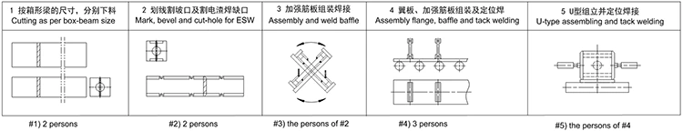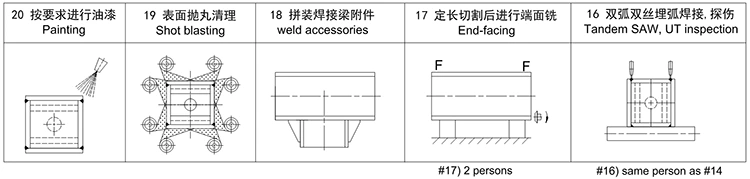 தட்டுகளிலிருந்து எச் பீம் மற்றும் இறுதி ஆய்வு வரை உற்பத்திக்கான உற்பத்தி ஓட்ட விளக்கப்படம் பின்வருமாறு.